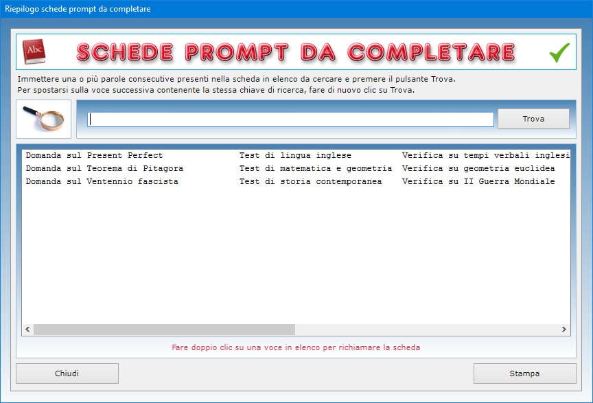 avanzata che permette di trovare rapidamente i prompt
