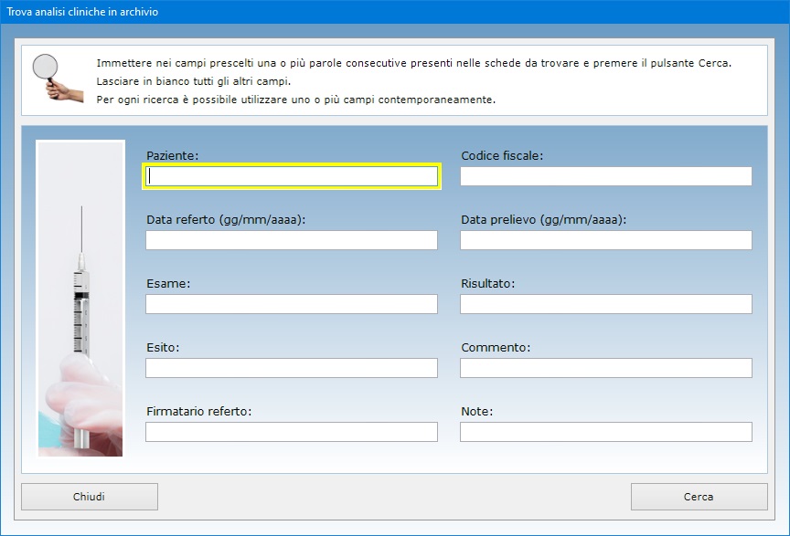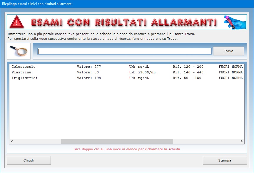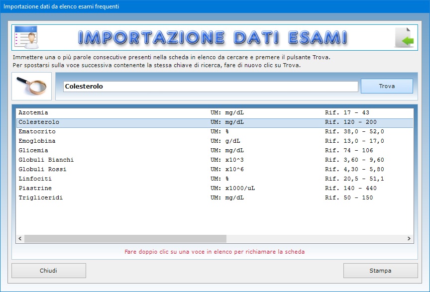 di esame clinico. Fatto ciò, bisogna selezionare la