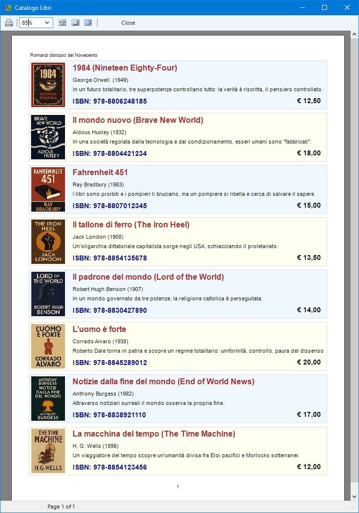 stampante virtuale. Ogni pagina del catalogo