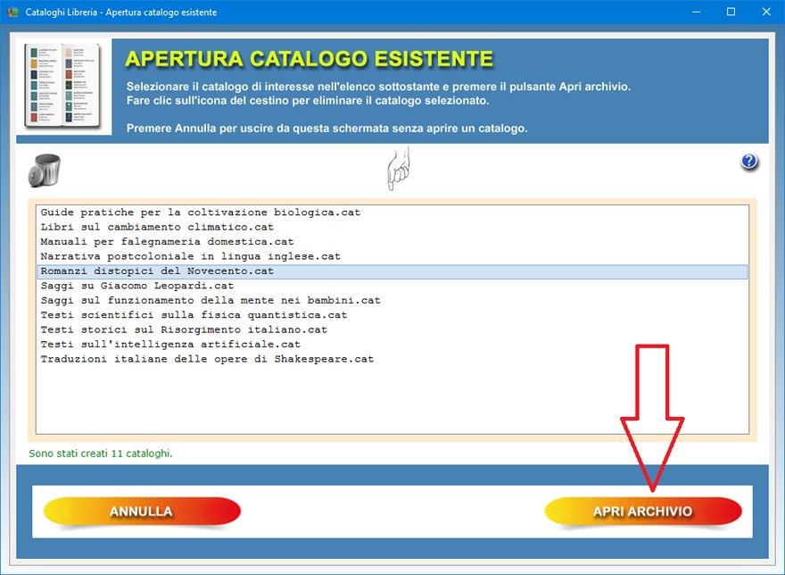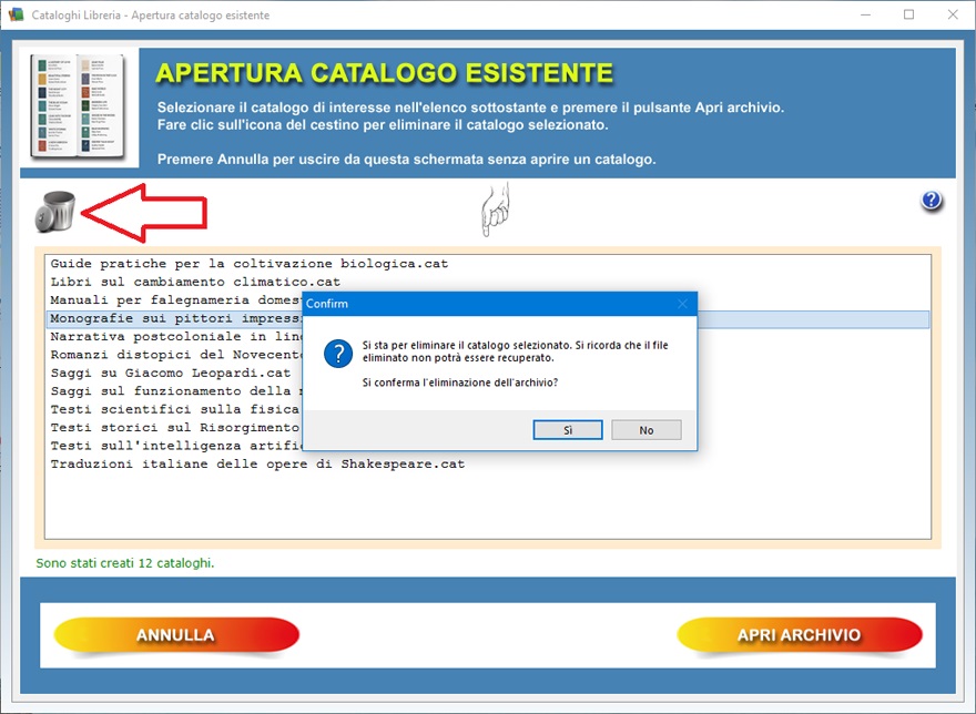 del cestino consente di eliminare il catalogo