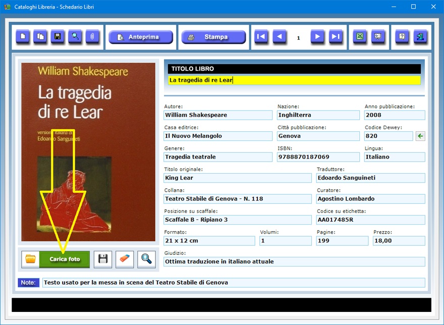 dell'archivio dei libri utilizzando il pulsante Carica