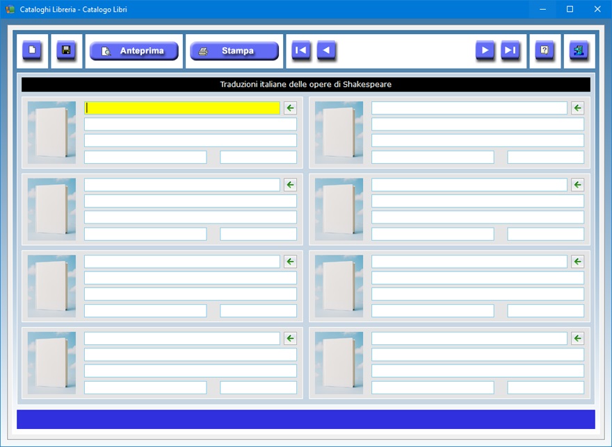 catalogo bibliografico su cui si sta lavorando. La