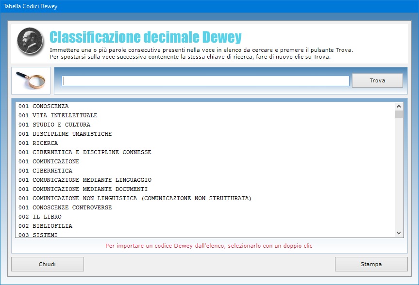 Se non si ricorda il codice Dewey relativo