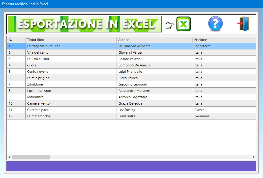 importando i dati dallo schedario dei libri nel quale