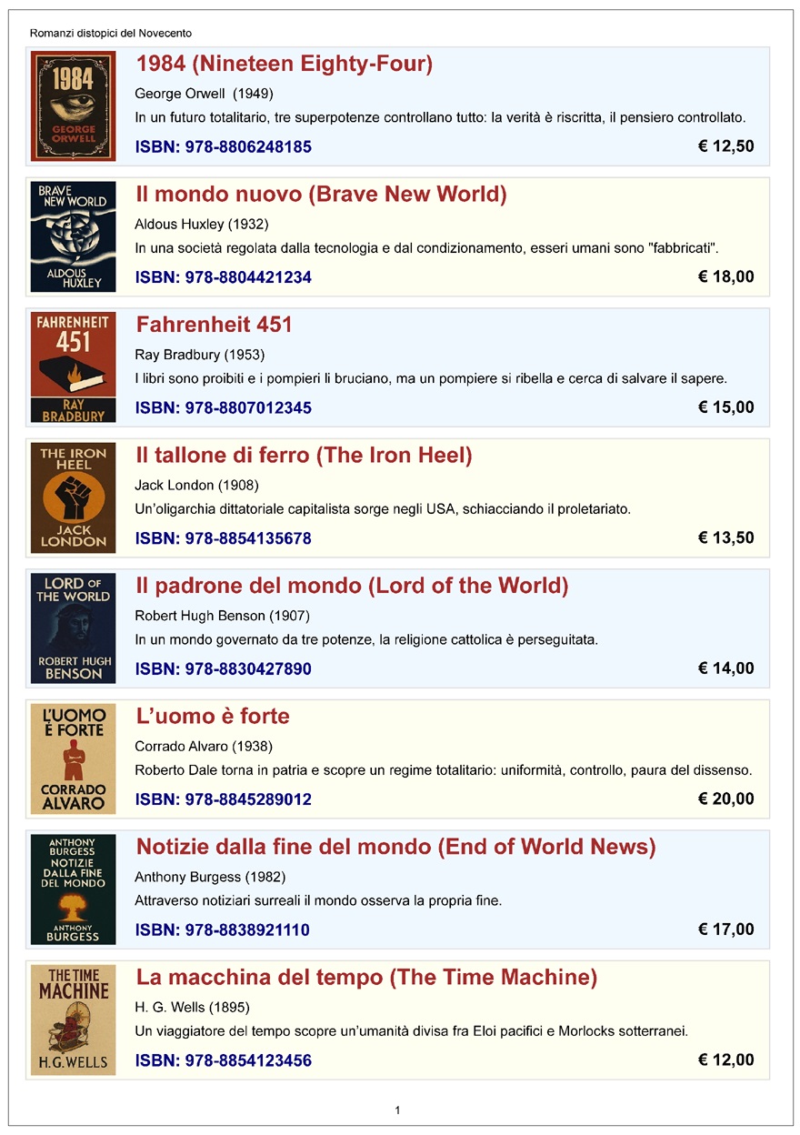pubblicazione, il codice ISBN del libro, il prezzo in