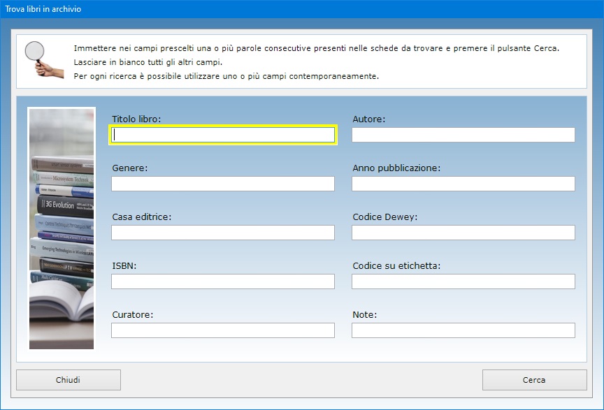 ricerca fra le schede dell'archivio dei libri e di