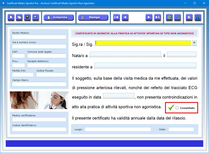 certificati di tipo agonistico, un apposito pulsante
