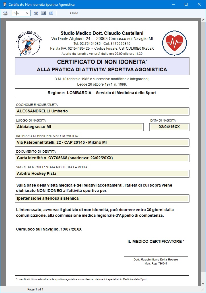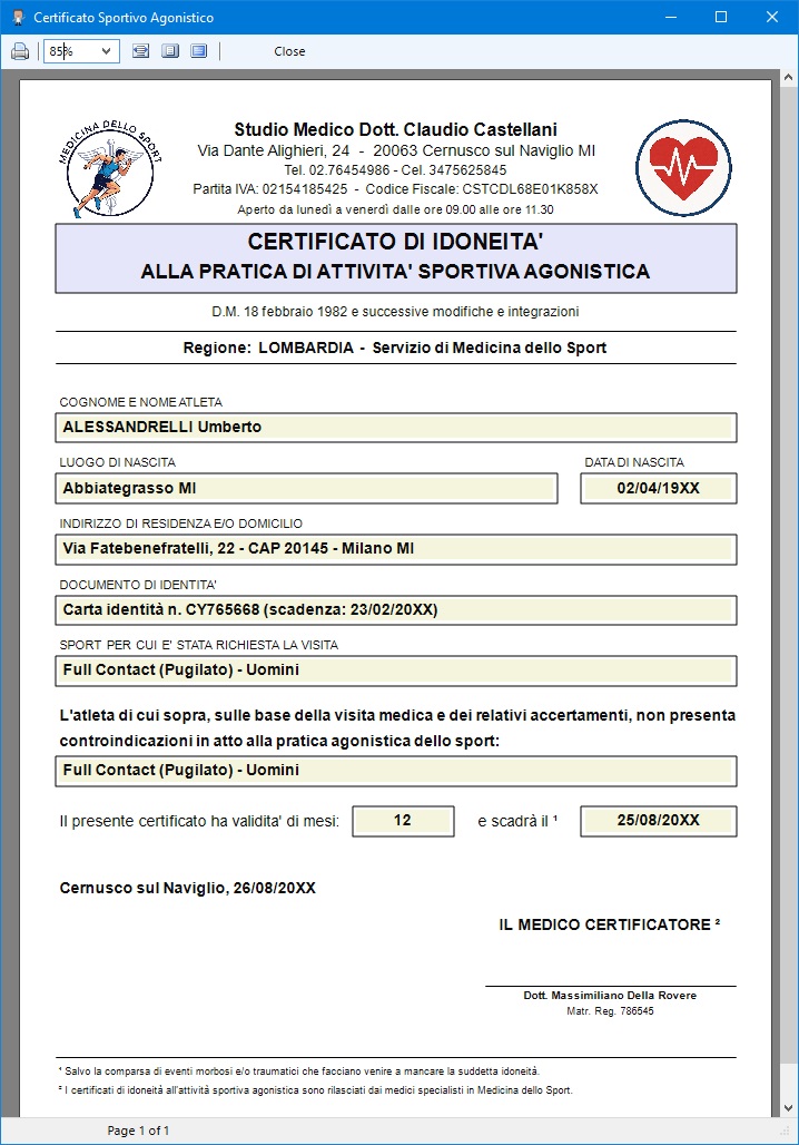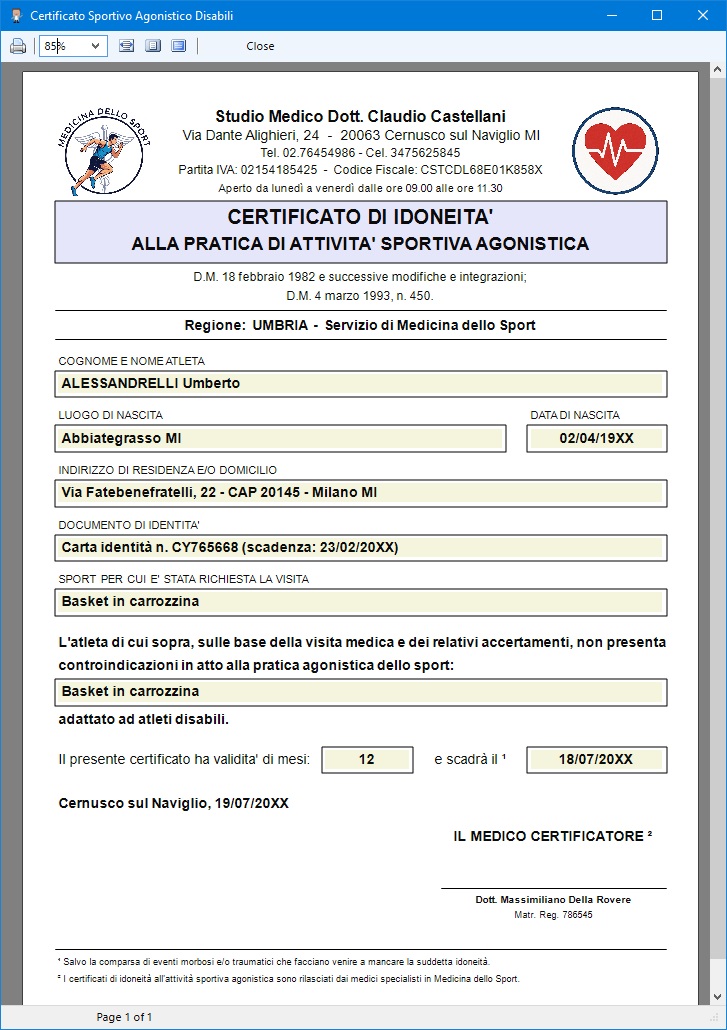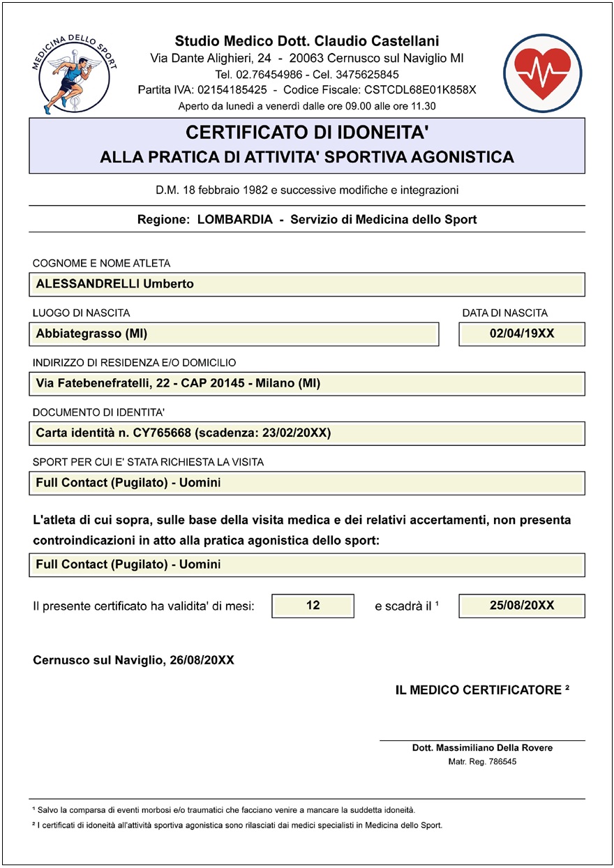 certificati medici sportivi formattati in maniera