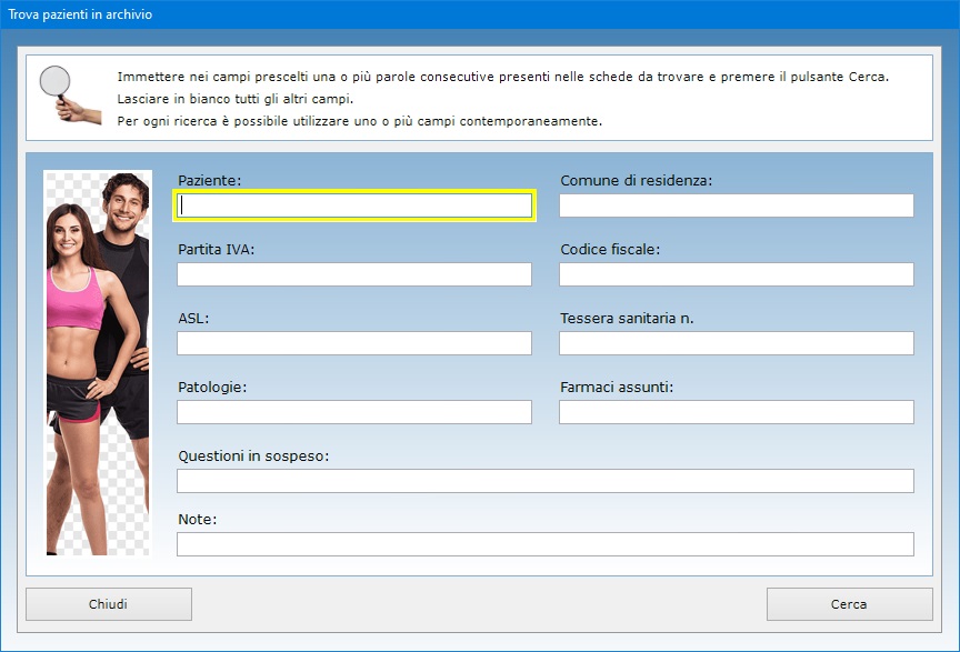 campi riguardanti il nome del paziente, il suo