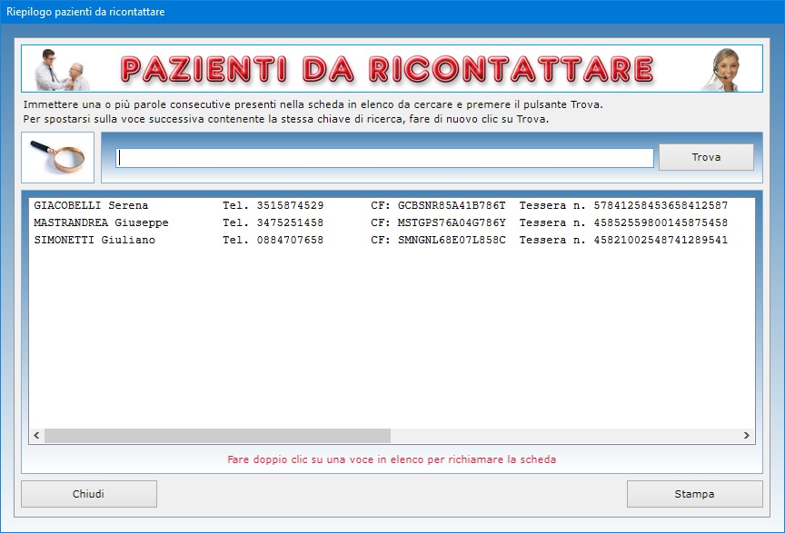 scheda in un elenco contenente tutti i pazienti con