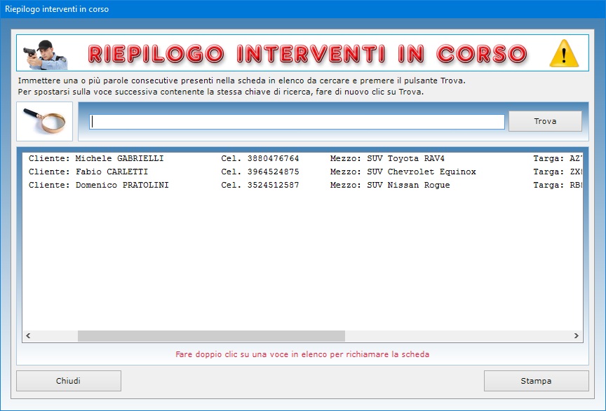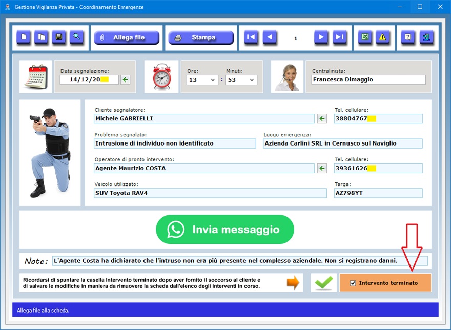 di Vigilanza che ha risposto alla chiamata, il nome e