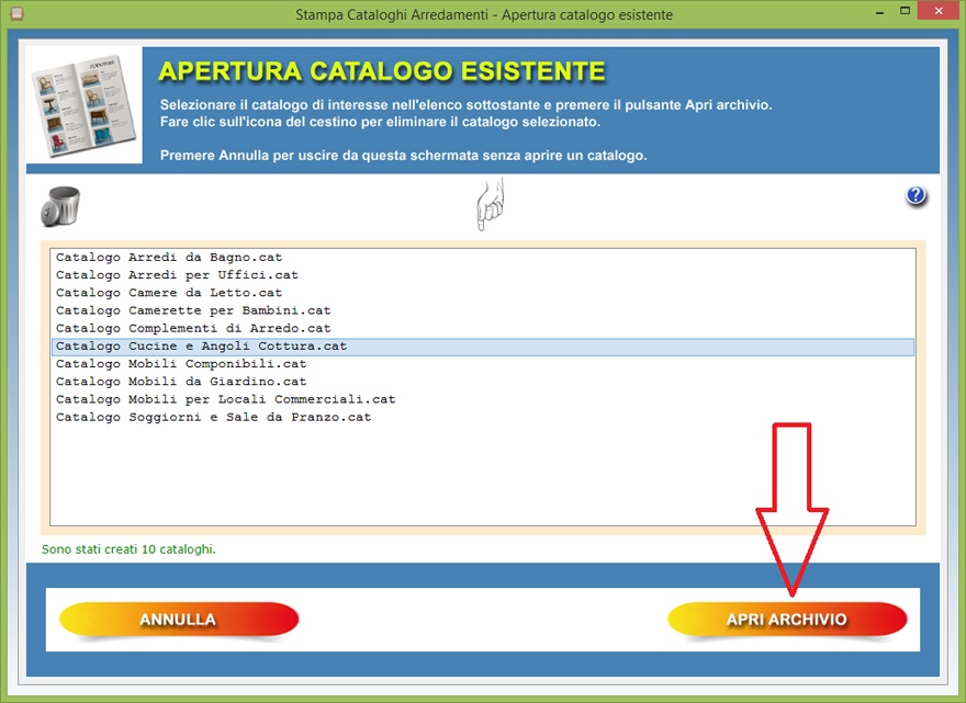 fare clic sul pulsante Apri catalogo esistente
