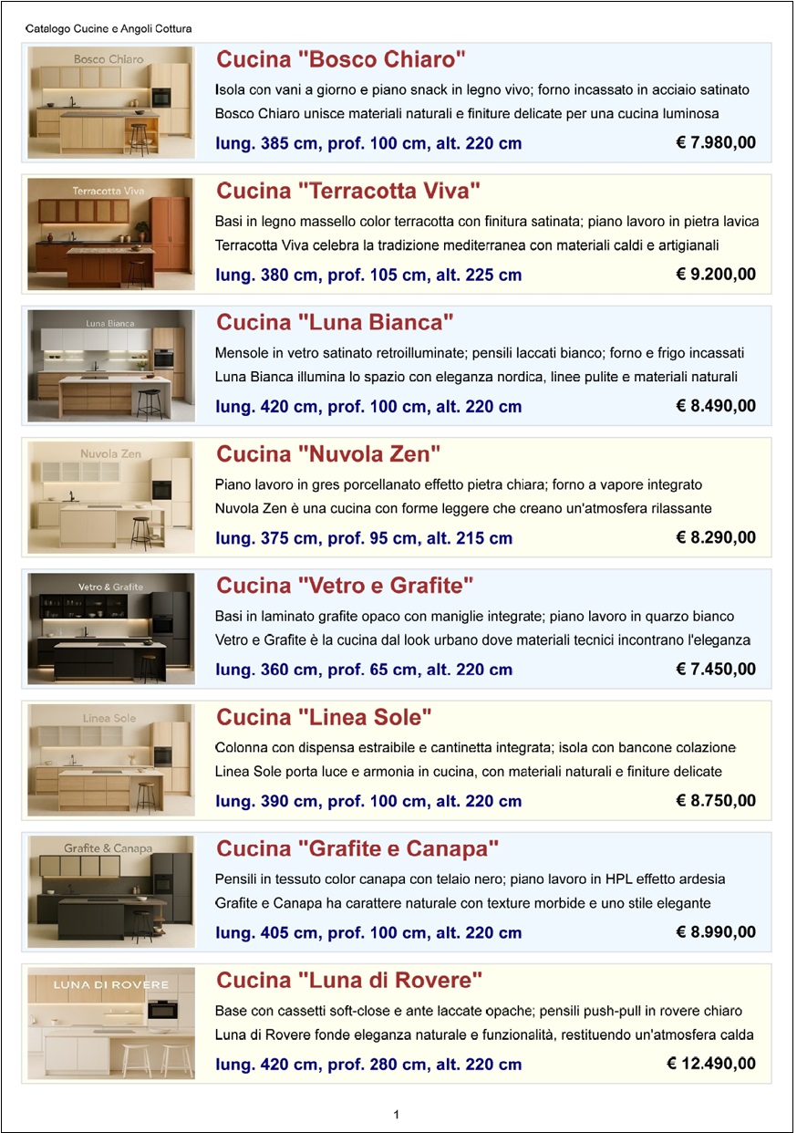 tutte le cucine fornite da un determinato mobilificio