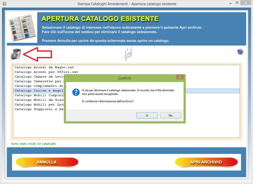 del cestino consente di eliminare il catalogo di