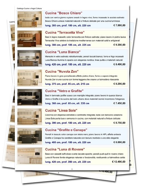 le singole pagine del catalogo degli arredamenti,