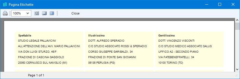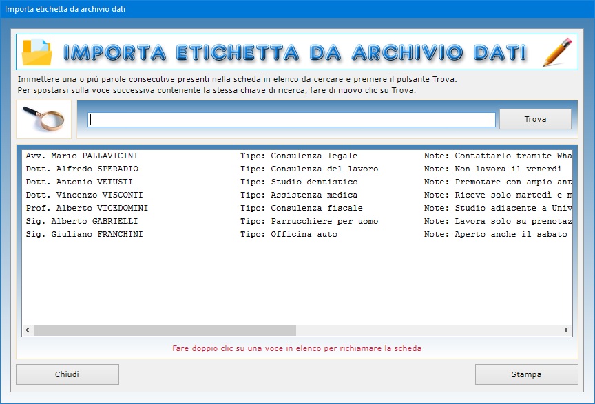 etichette e anche di stampare indirizzi direttamente