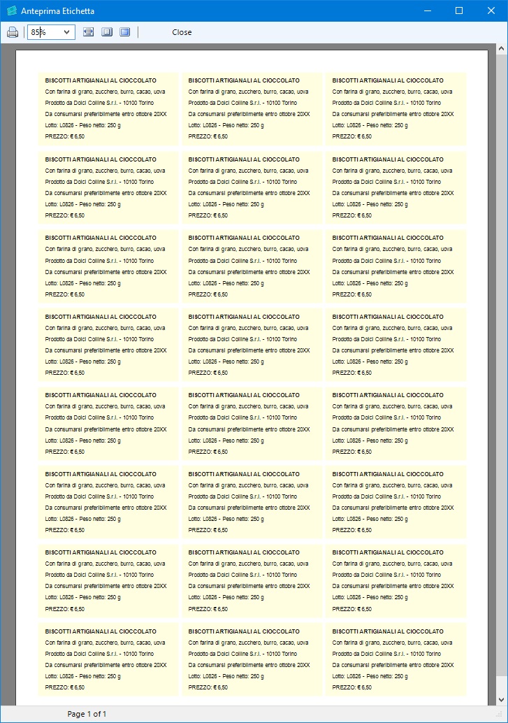pagine, ognuna contenente 24 etichette.