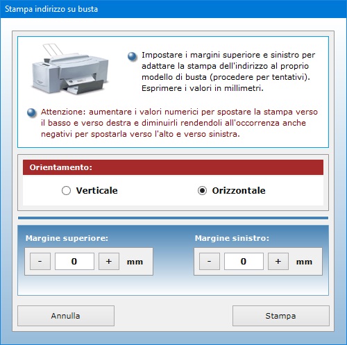 anche possibile impostare l'orientamento di stampa