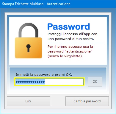 L'accesso al software è protetto da una password