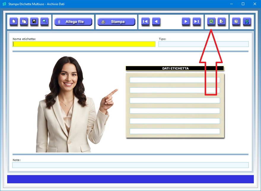 riquadro riservato ai dati dell'etichetta.