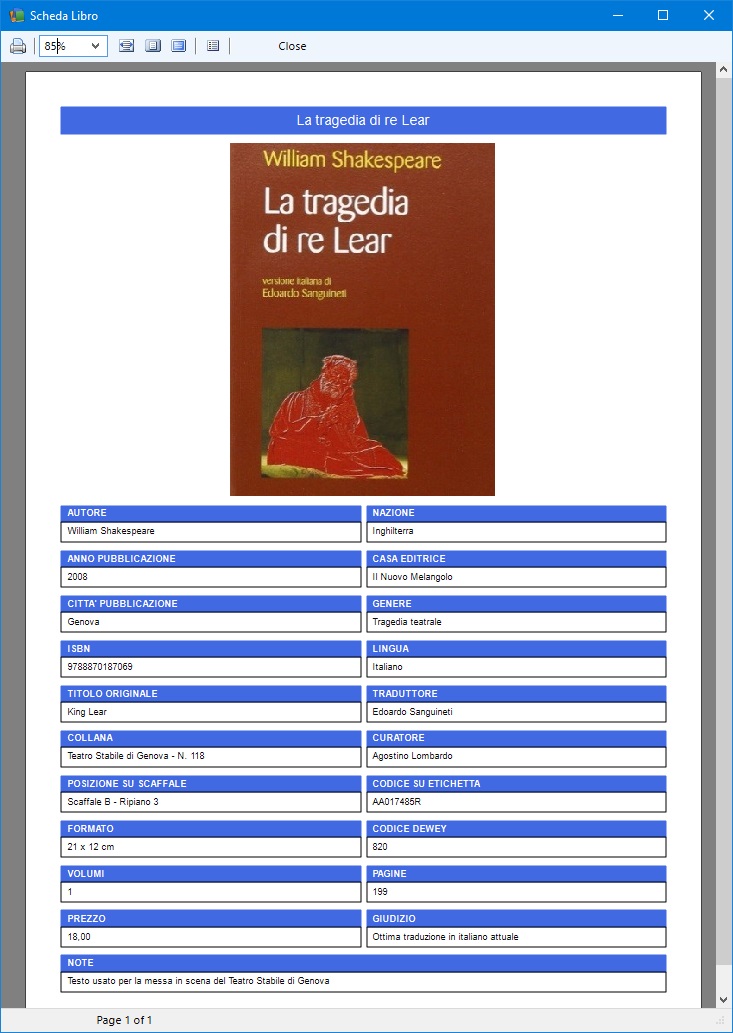 pubblicazione, il codice ISBN del libro, il prezzo in