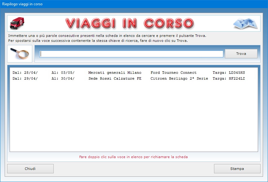 riepilogo che si ottiene mostra, per ciascun viaggio